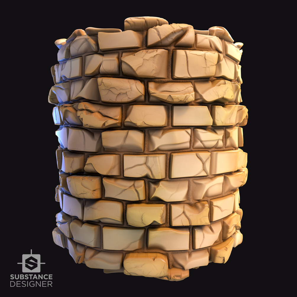 Stylized Desert Bricks I created in substance designer and rendered in Marmoset. 100% Substance Designer. These tiles were inspired/based off of a material made by Michael Vicente. There are tons of parameters that are exposed and you are able to edit, however if there is something more you'd like to see let me know!
